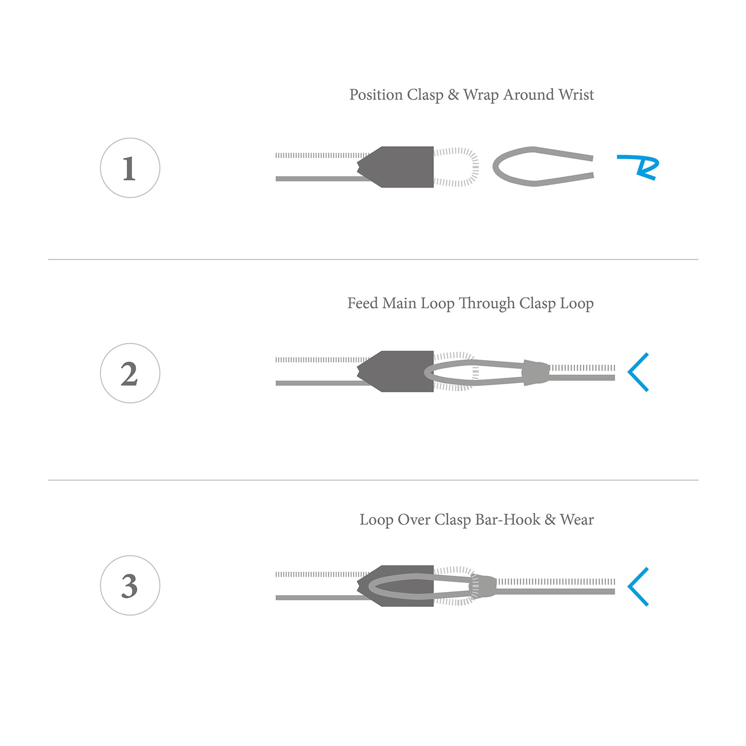This bracelet is available in four bracelet lengths, 17cm, 19cm, 21cm or 23cm in circumference. To take the bracelet on or off your wrist, simply (un)clutch the chain loop from the bar-hook cleat. As pictured, the bracelet is most secure when the chain loop is fed through the smaller loop that emerges beyond the clasp.
